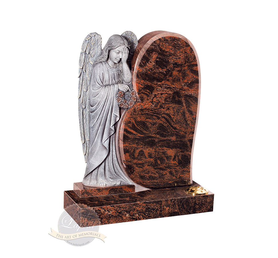 BL13 Aurora Headstone An elegant carved angel holding a reef of flowers