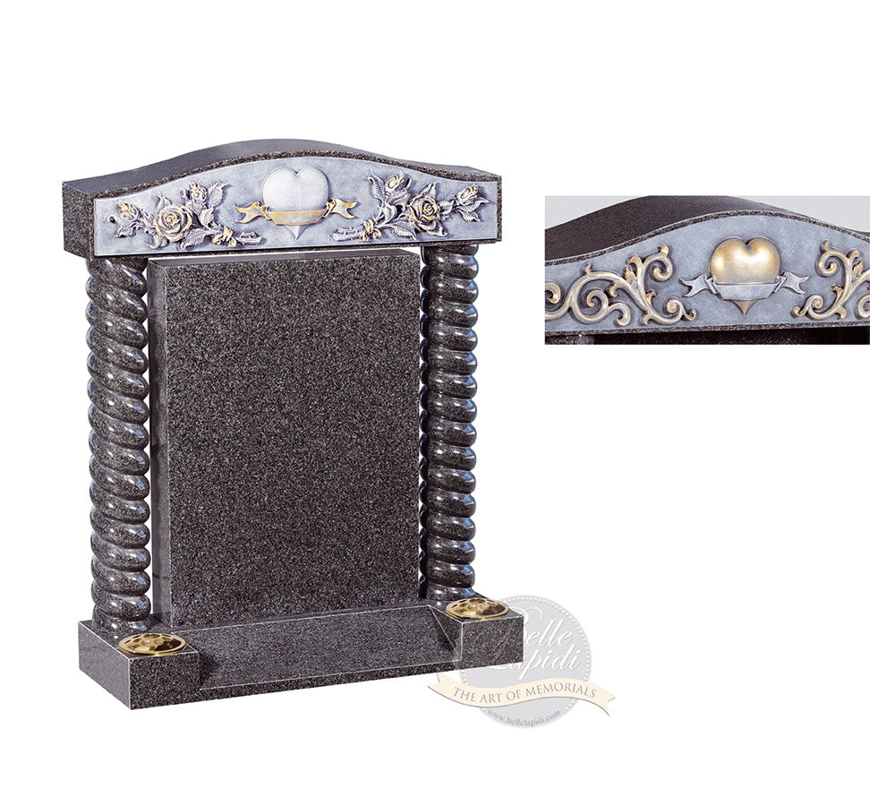 BL131 S.A. Grey Headstone Detailed carved roses and heart set on a canopy set with twisted pillars (two options of design available)