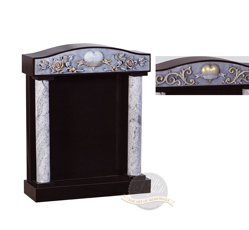 BL132 South Africa Grey Headstone Detailed carved roses and heart set on a canopy set with rounded pillars (two options of design available)