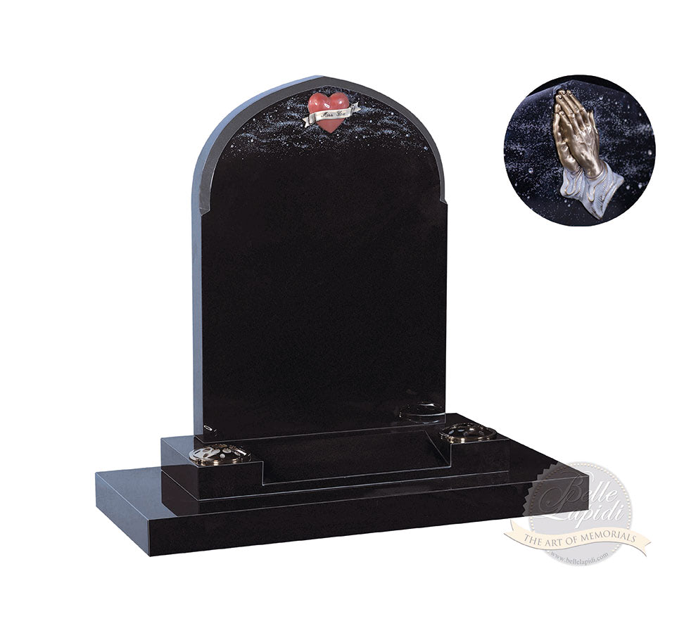 BL135 Jet Black Headstone A beautiful bronze red heart and 'Miss You' scroll set at the top of a shaped headstone with sparkle effect and diamantes