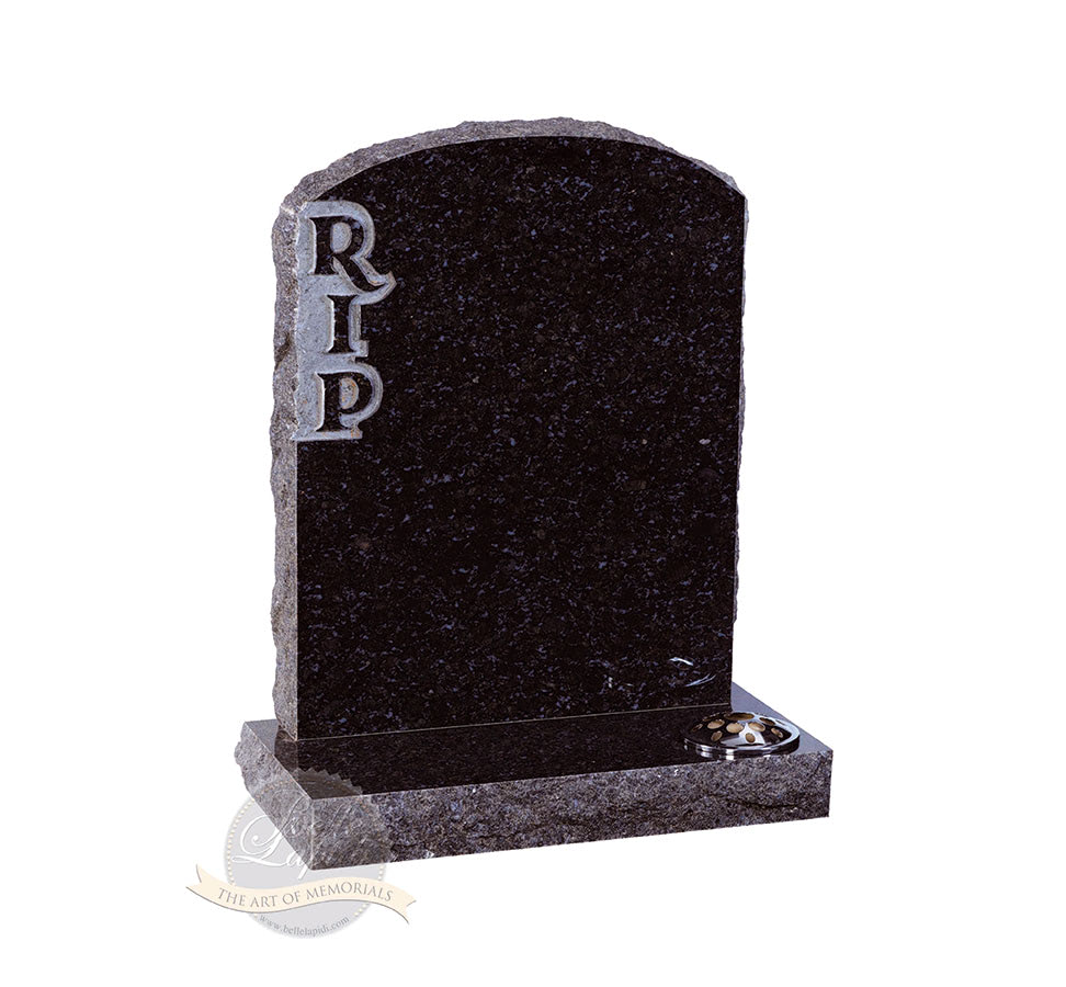 BL146 Butterfly Blue Headstone Pitched edge headstone and base with 'RIP' suitable for Churchyard