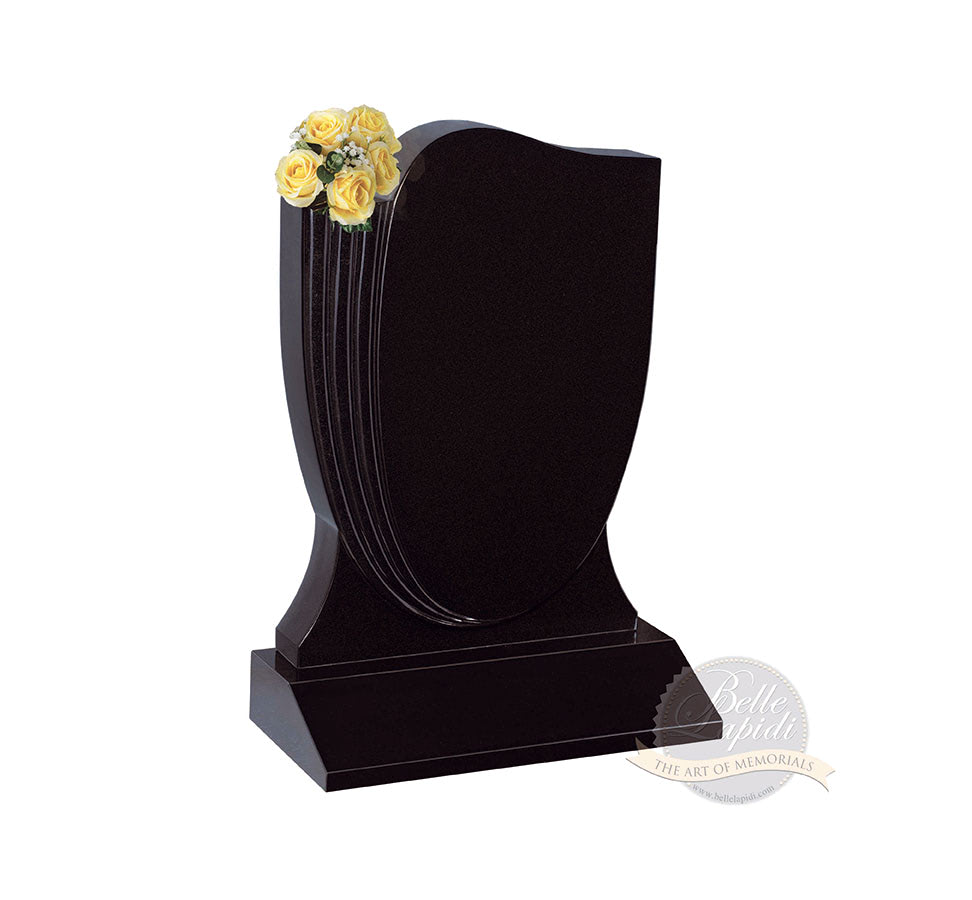 BL148 Jet Black Headstone Unique shaped headstone with fully splayed base giving room for extra wording