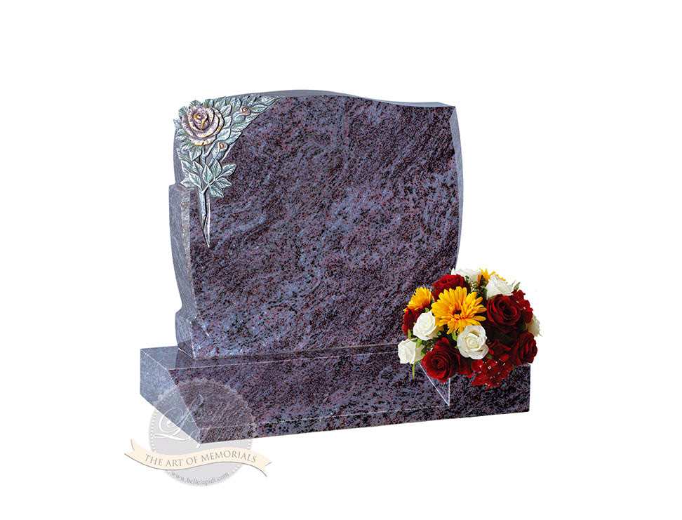 BL176 Silk Blue Headstone Beautiful carved rose and leaves with added colour