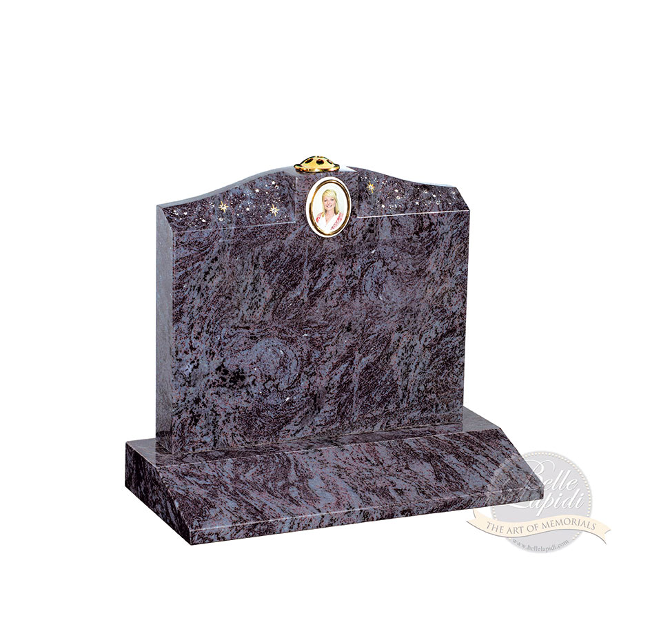 BL177 Silk Blue Headstone Simple splayed headstone and base with sparkle effect and diamantes with photo plaque