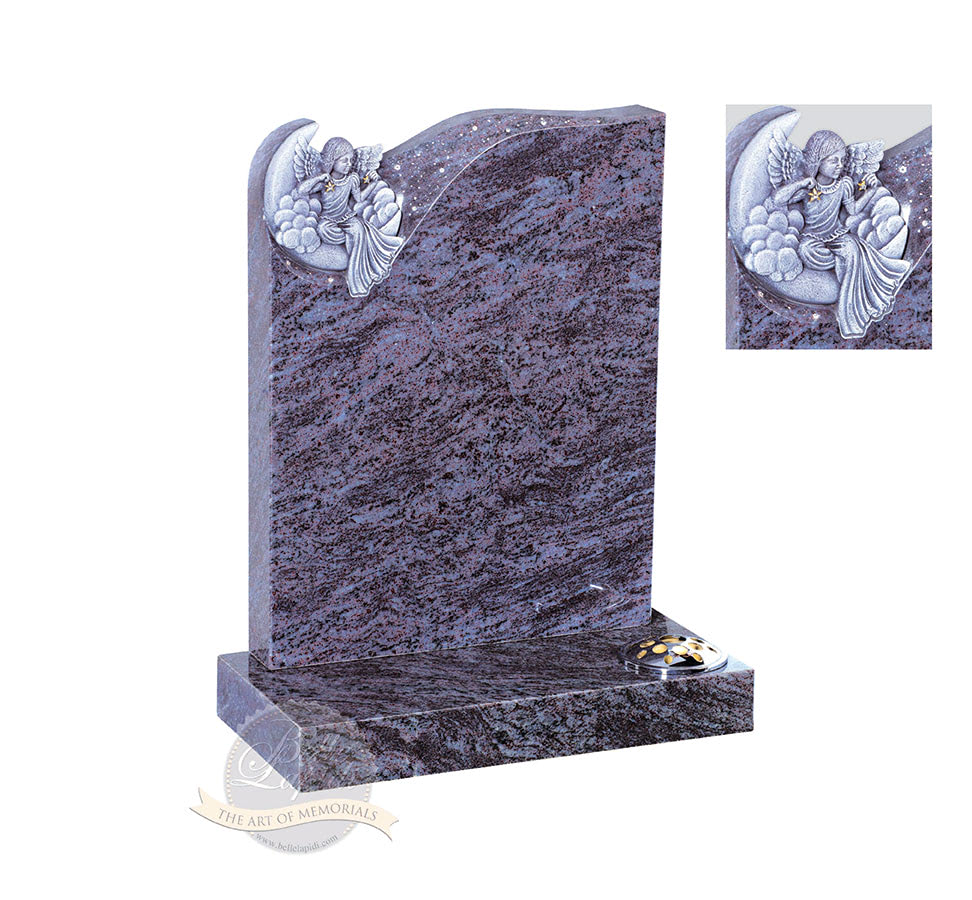 BL192 Silk Blue Headstone Stunning agglomerate angel perched on a moon with diamantes