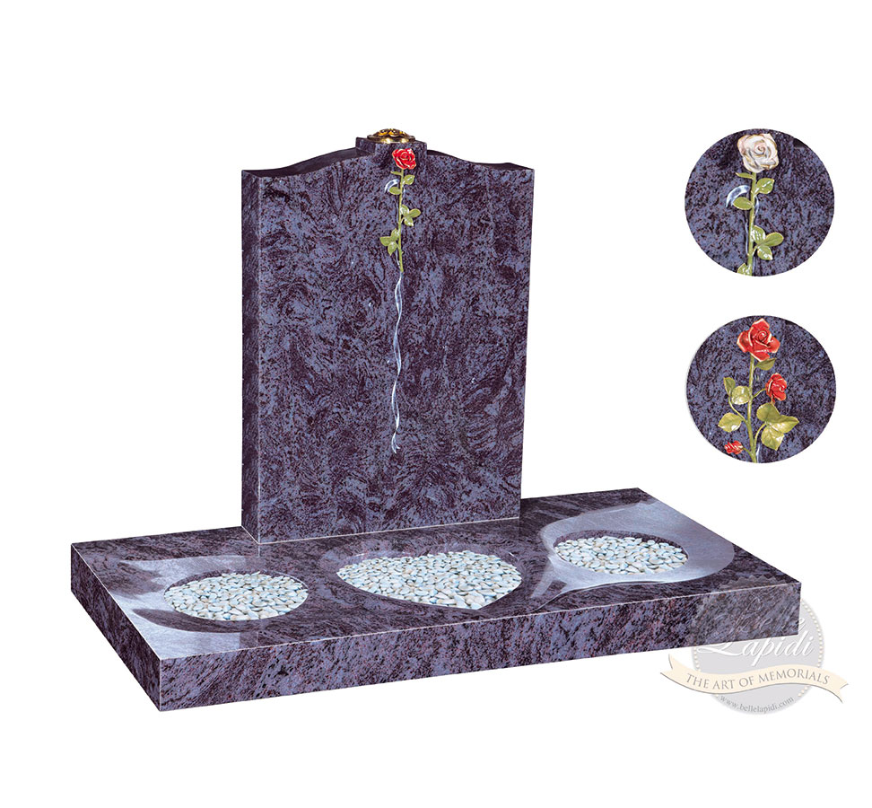 BL203 Silk Blue Headstone Bronze rose with sandblasted ribbon creates a delicate divide along with cut-outs in the surround. Other rose options available