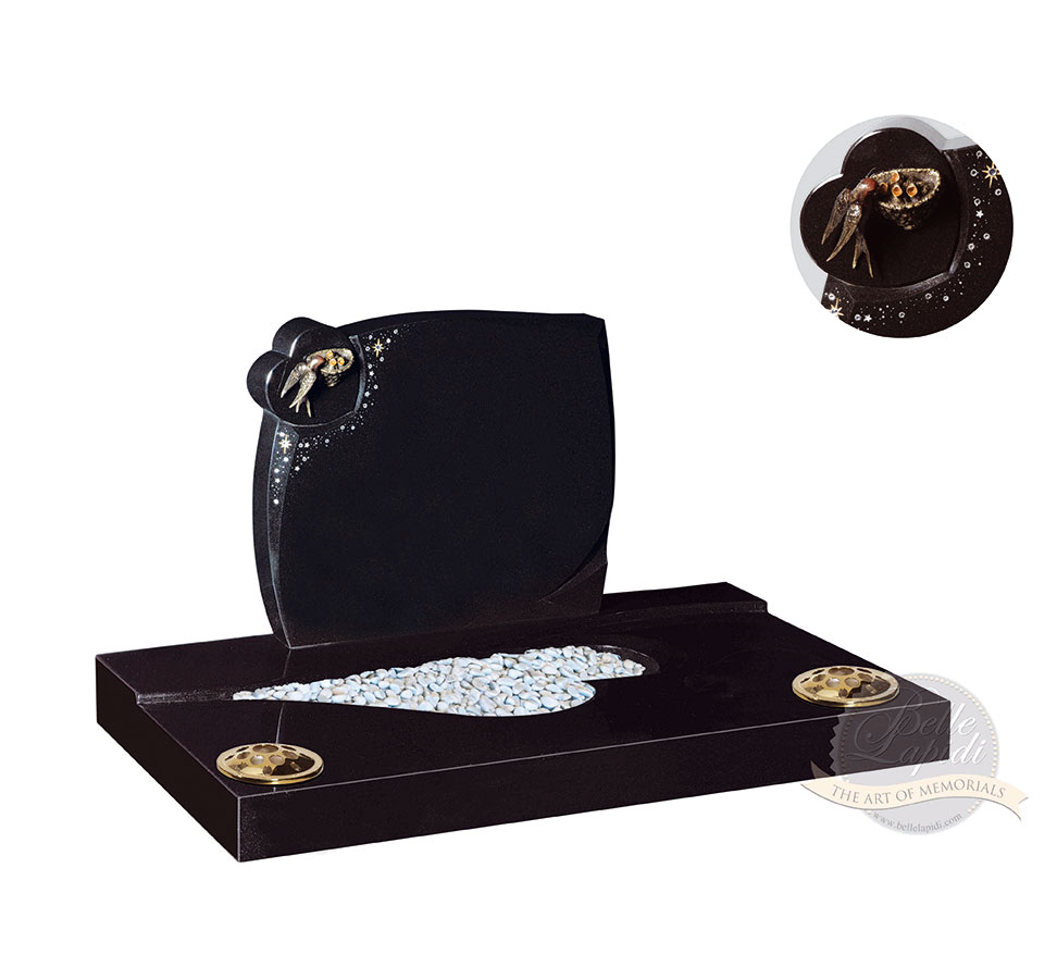 BL207 Jet Black Headstone Bronze bird feeding hatchlings set on a small bullnosed heart with heart shaped cut-out in the surround