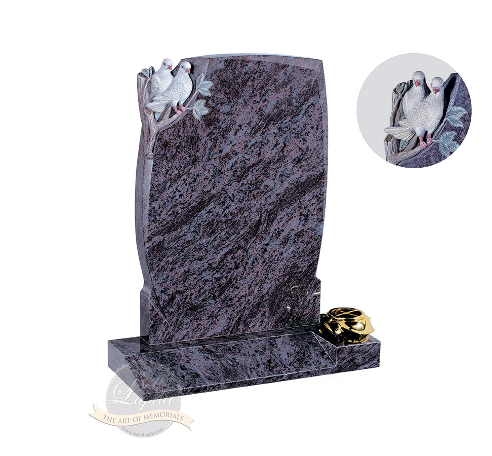 BL39 Silk Blue Headstone A pair of doves beautifully carved into a headstone with a stunning gold vase