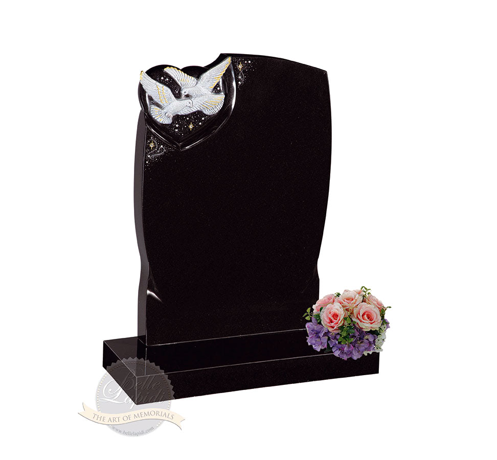 BL49 Jet Black Headstone A pair of carved doves, sparkle effect and diamantes situated on a small bullnosed heart
