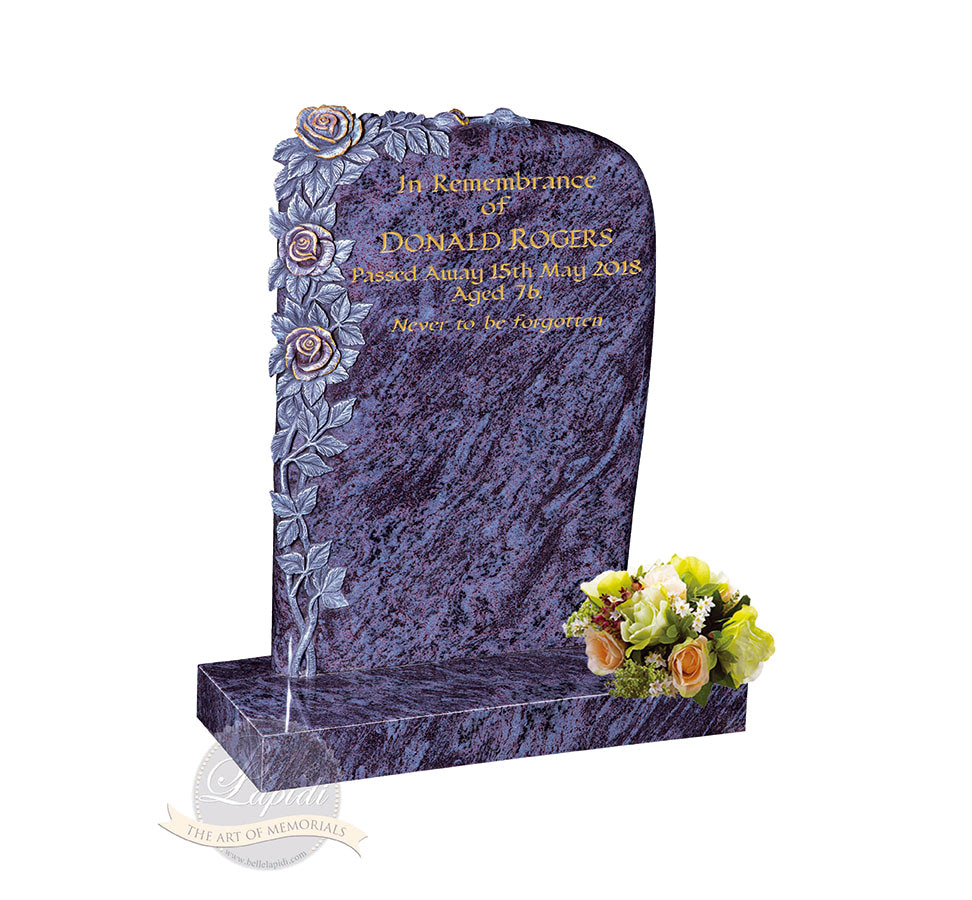 BL92 Silk Blue Headstone Beautifully formed carved rose design