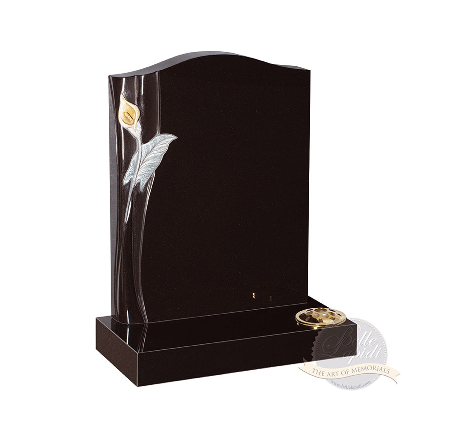 BL97 Jet Black Headstone A delightful carved lily design situated on the side of the memorial