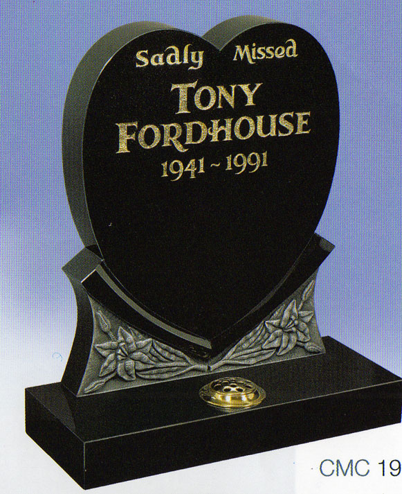 A charming heart shaped headstone completed with carefully hand carved flowers that constructs a delightful piece