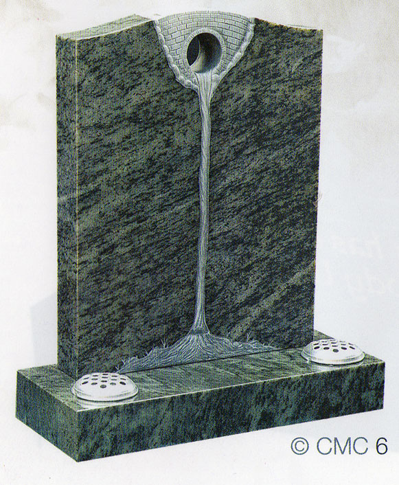 Tropical green is a stunning colour. The amazing hand carved bridge and waterfall design has an antique image that creates a unique headstone.