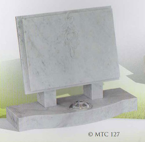 The classic book design is shown in white marble and the tassel is replaced with a lovely rose carving for a wonderful presentation put with the ogee base.
