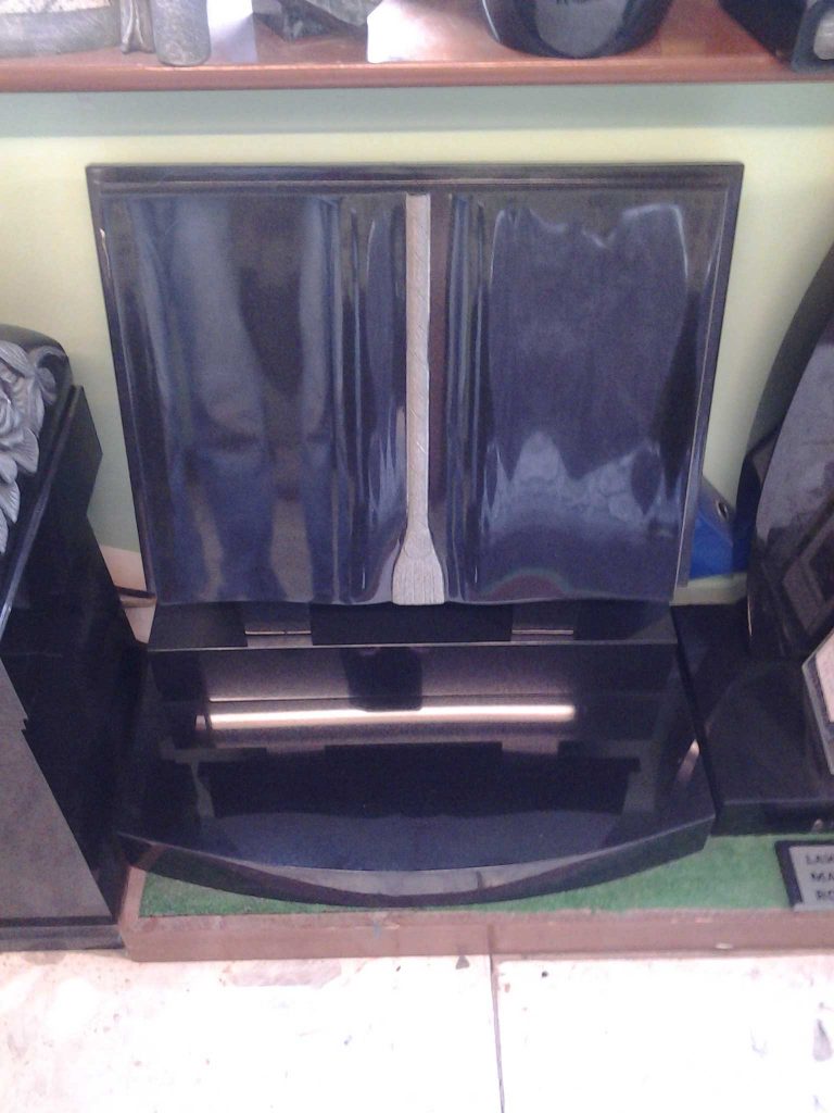 Special offer classic black granite ogee top headstone with flower vase and a small design.